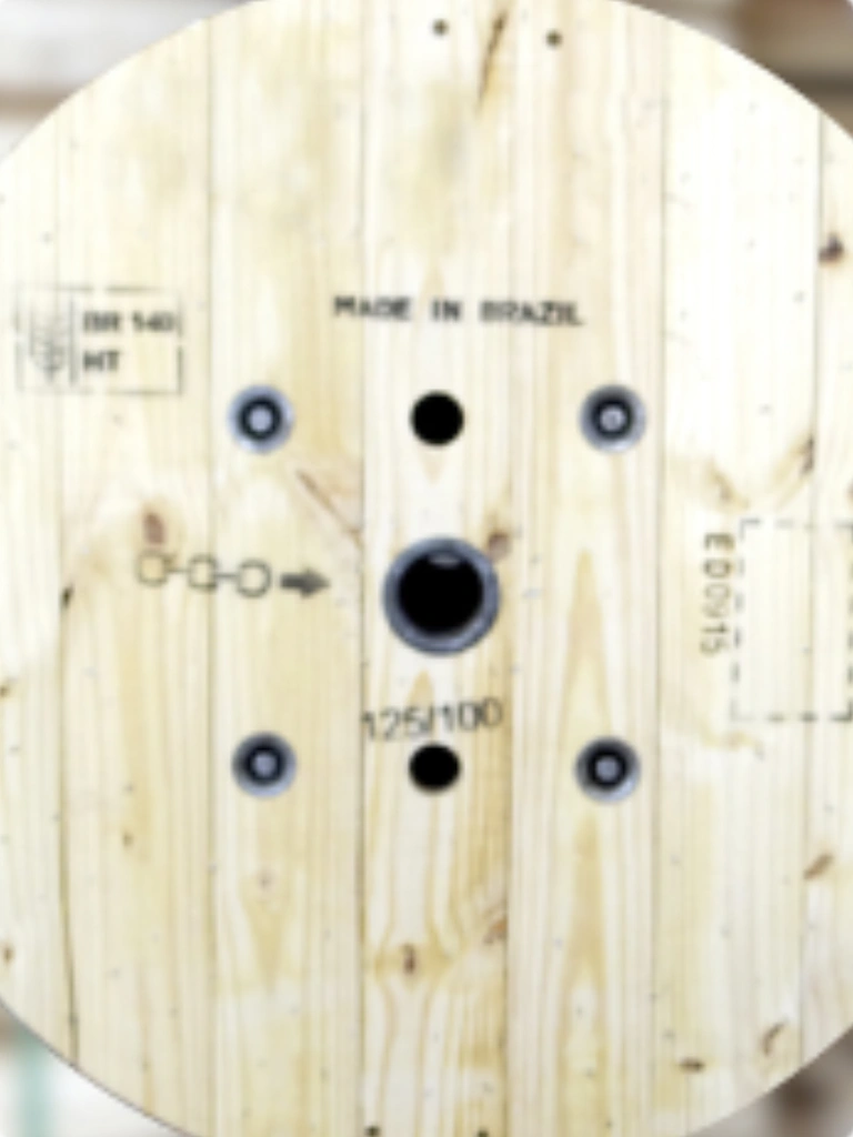 The wooden reel is a special packaging for wires, cables and strands (electrical, telecommunication, steel and others), consisting of lateral discs (flanges), core, closure, and hardware such as braces, bushings, nuts, plain and concave washers.